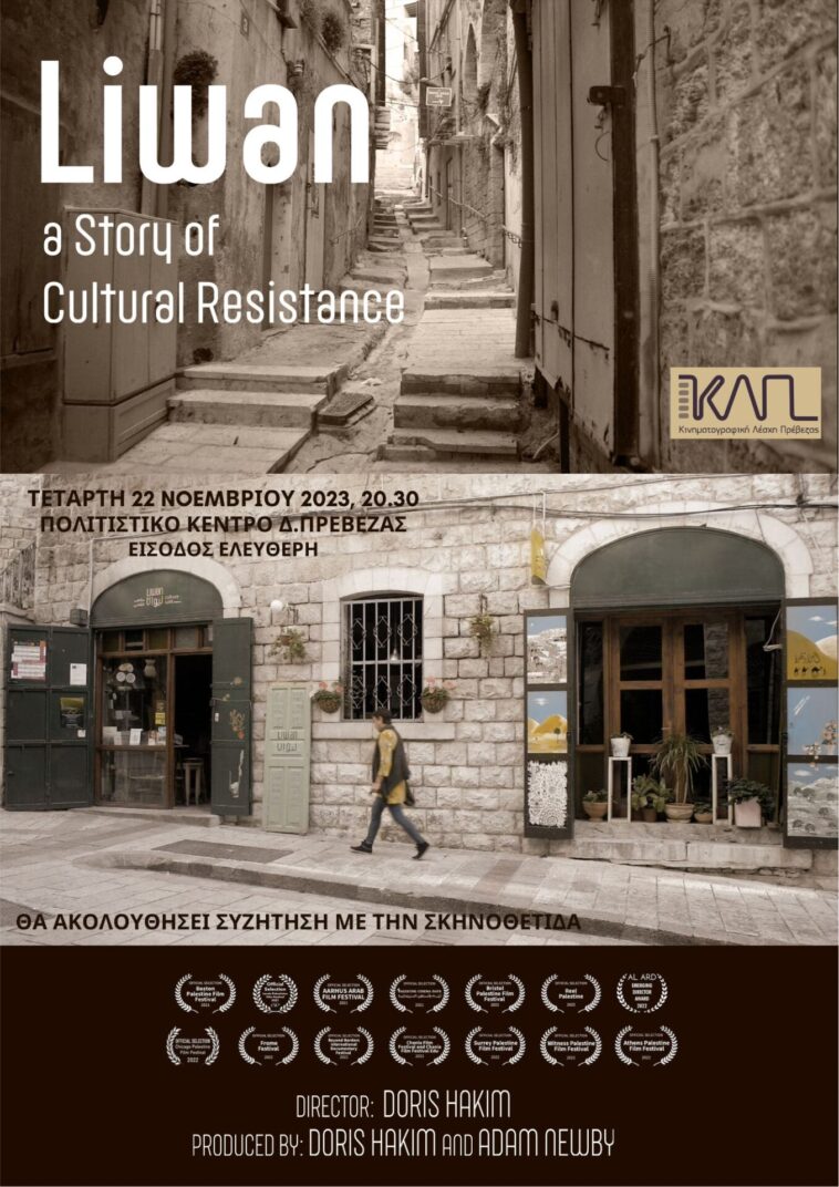 Η Κινηματογραφική Λέσχη Πρέβεζας πιστή στην προβολή ταινιών με κινηματογραφικό χαρακτήρα και αισθητική, προβάλει την ταινία ” Liwan: a Story of Cultural Resistance ” (2021) σε σκηνοθεσία της Ντόρις Χακίμ – Πιπεράκη αυτή την Τετάρτη 22 Νοεμβρίου στις 20.30 στο Πολιτιστικό Κέντρο Πρέβεζας με παρουσία της σκηνοθέτιδος. Η είσοδος είναι ελεύθερη.