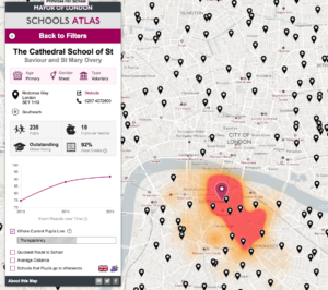 Ο Σχολικός Άτλαντας του Λονδίνου, αξιοποιεί τα ανοιχτά δεδομένα και αποτελεί εργαλείο επιλογής σχολείου και τόπου κατοικίας μιας οικογένειας.