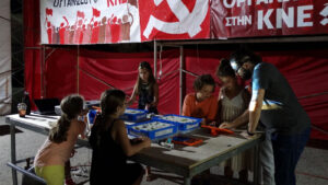 Αντίστοιχα το Σάββατο πραγματοποιήθηκε η μεγάλη πολιτική συγκέντρωση με ομιλητή τον Κώστα Παπαδάκη, μέλος της ΚΕ και ευρωβουλευτή του ΚΚΕ.
