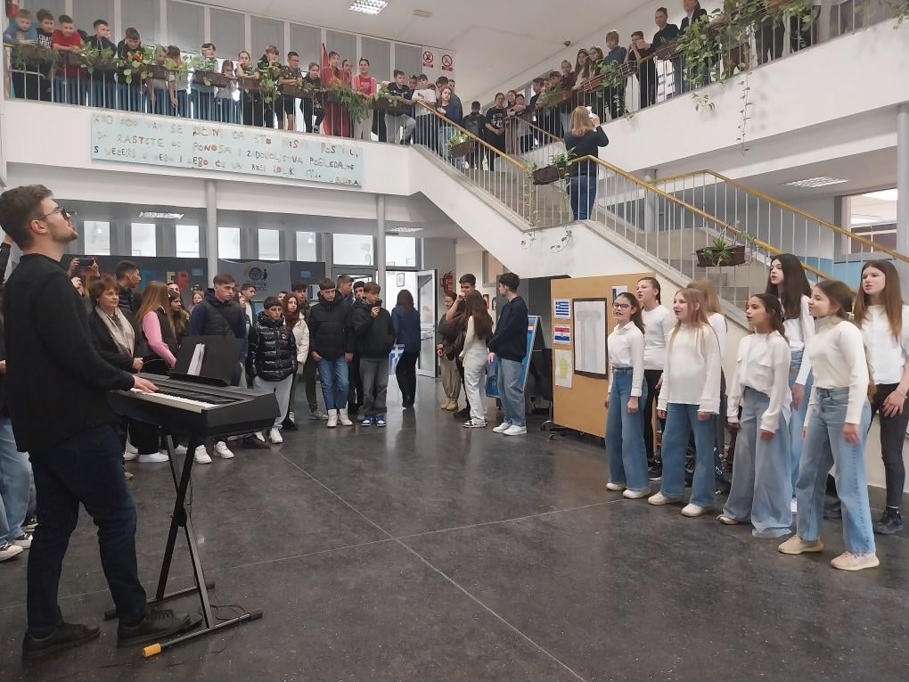 Με την άφιξή μας στο Ζάγκρεμπ, μας υποδέχτηκαν θερμά στο σχολείο "Osnova škola Sesvetski Kraljevec" με μια όμορφη τελετή, η οποία περιλάμβανε ζωντανή μμουσική και παραστάσεις. Η πρώτη μέρα ήταν γεμάτη με εκπαιδευτικές δραστηριότητες, όπως ένα κουίζ για τις κροατικές παραδόσεις και συνεργατικά εργαστήρια ψηφιακής αγγλικής γλώσσας και ρομποτικής .