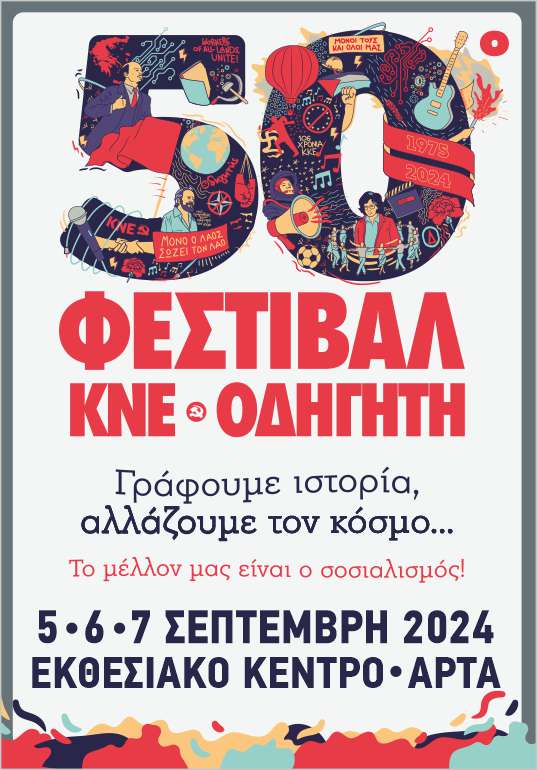 Το Φεστιβάλ της ΚΝΕ και του “Οδηγητή” συμπληρώνει φέτος 50 χρόνια ζωής, διανύοντας έναν δρόμο μισού αιώνα, που μπορεί να μοιάζει μακρινός, αλλά δεν έχει επηρεάσει καθόλου τη ζωντάνια, τη διάθεση, τη δίψα για ακόμα περισσότερα. Ήταν τέτοια η πορεία του Φεστιβάλ στον χρόνο, που δημιούργησε το ίδιο τις συνθήκες και τις στιγμές, ώστε να το κάνει αναπόσπαστο στοιχείο της πολιτικής και της πολιτιστικής δράσης της ΚΝΕ. Γιορτάζουμε την επέτειο των 50 χρόνων του Φεστιβάλ της ΚΝΕ, χαρούμενοι και περήφανοι για όσα έχει πετύχει στη διαδρομή του, αλλά κυρίως για το ότι έχει κατορθώσει να αγκαλιαστεί από διαφορετικές γενιές και συνεχίζει να συγκινεί και τις νεότερες όσο προσελκύει χιλιάδες νέους και νέες κάθε χρόνο στις εκδηλώσεις του.
