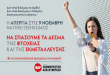 Η ΑΠΕΡΓΙΑ ΣΤΙΣ 9 ΝΟΕΜΒΡΗ ΝΑ ΓΙΝΕΙ ΞΕΣΗΚΩΜΟΣ