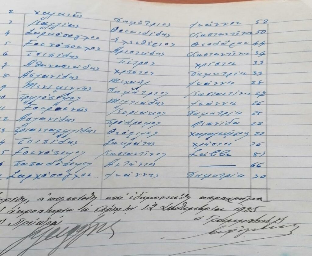 Προσπαθήσαμε να καταγράψουμε τα επίθετα αυτών που έμειναν στην Άρτα, τα καταφέραμε καλά με την βοήθεια φίλων. Ασλανίδης Μιχαήλ και Κων/νος, Αθανασιάδης Δημήτριος και Χρήστος, Αϊβάζογλου Σεραφείμ, Αλεξανδρίδης Γεώργιος, Βελισαρίδης Ηρακλής, Γουνόπουλος Αριστείδης, Φώτης και Κώστας, Γουρουνάς Κυριάκος, Ιορδάνης Θεοφανίδης, Καζαντζής Στέλιος, Κουθουρίδης Θεοχάρης, Καλαντζής Γιάννης, Κρανίδης Γιάννης, Κερασίδης Ευστάθιος και τα παιδιά του Ανδριανός, Κώστας και Θεόφιλος, Καλαϊτζιδης Γιάννης, Μενεμενλής Δημήτριος, Μαυρίδης Χρήστος, Παπαδόπουλος Αντώνιος και Ηλίας, Περπερίδης Γιώργος και Ανδρέας, Παπάζογλου Κυριάκος, Νίκος και Μιχάλης, Πετρόπουλος Σάββας, Σαρχόσουγλου Ελευθέριος και Γιάννης, Σαριπαπάζογζου Χρήστος, Στεφανίδης Μιχαήλ, Σαβουλίδης Πέτρος, Σαχταρίδης Χρήστος και Αριστ., Σελματζόγλου, Τσιπίδης Πέτρος και Σωκράτης, Τριανταφυλίδης Θεόφιλος και Γιάννης, Τομπουλίδης Κώστας και Παύλος, Τσελεκίδης, Υφαντόπουλος Θόδωρος, Ψιτόπουλος Πέτρος.