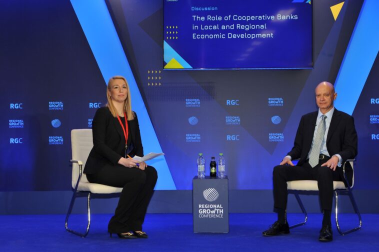 Στο πλαίσιο του συνεδρίου, ο Διευθύνων Σύμβουλος της Συνεταιριστικής Τράπεζας Ηπείρου κ. Ιωάννης Βουγιούκας, συμμετείχε σε συζήτηση με τη δημοσιογράφο κα. Έφη Μπαρμπάτση, με θέμα τον κομβικό ρόλο που διαδραματίζουν οι Συνεταιριστικές Τράπεζες για την ανάπτυξή των τοπικών οικονομιών και κοινωνιών. Μεταξύ άλλων, ο κ. Βουγιούκας τόνισε τη στήριξη των μικρομεσαίων περιφερειακών επιχειρήσεων από τις περιφερειακές τράπεζες και τη δυνατότητα πρόσβασης σε ευέλικτες και προσιτές χρηματοδοτικές λύσεις που αυτές προσφέρουν. Υπογράμμισε δε πως η μη συμμετοχή των συνεταιριστικών τραπεζών στις διαδικασίες χαμηλότοκης χρηματοδότησης επενδυτικών σχεδίων μέσω του Ταμείου Ανάκαμψης και Ανθεκτικότητας, θα δημιουργήσει άνισο επιχειρηματικό ανταγωνισμό και πλήγμα στην ανάπτυξη της πραγματικής οικονομίας.