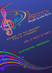 Αιτήσεις για την εισαγωγή μαθητών/μαθητριών στην Α΄ Γυμνασίου του Μουσικού Σχολείου Άρτας Για την εισαγωγή μαθητών/μαθητριών στην Α΄ Γυμνασίου του Μουσικού Σχολείου Άρτας για το σχολικό έτος 2022-2023, οι γονείς/κηδεμόνες των υποψήφιων μαθητών/μαθητριών πρέπει να υποβάλουν αίτηση συμμετοχής στη διαδικασία επιλογής από τις 3 Μαΐου έως τις 31 Μαΐου 2022 και ώρα 14:00 αποστέλλοντας ηλεκτρονικά την αίτηση και τα επισυναπτόμενα έγγραφα που απαιτούνται, στο mail του σχολείου [email protected] ή με παρουσία στο σχολείο καθημερινά τις εργάσιμες ημέρες από ώρα 08.30 μέχρι 14.30. Την αίτηση μπορείτε να τη βρείτε στην ιστοσελίδα μας και στο σχολείο και θα πρέπει να υποβληθεί από κοινού από τους γονείς/κηδεμόνες των μαθητών/τριών. Πληροφορίες μπορείτε να βρείτε στην ιστοσελίδα μας http://gym-mous-artas.art.sch.gr και στο τηλέφωνο 2681085364.
