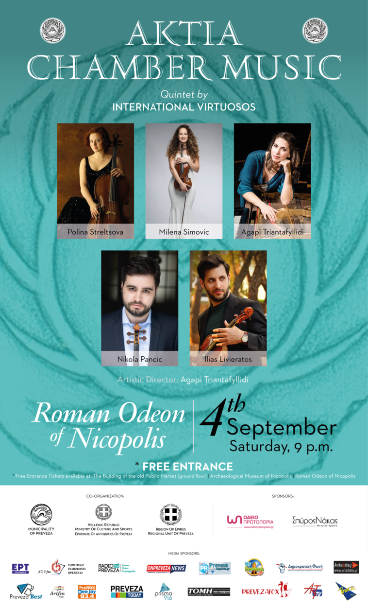 AKTIA CHAMBER MUSIC | Quintet by INTERNATIONAL VIRTUOSO Artists Συναυλία κλασσικής μουσικής στο Ρωμαϊκό Ωδείο Νικόπολης το Σάββατο 4 Σεπτεμβρίου