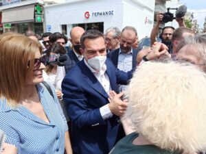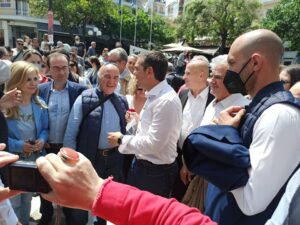Ο Πρόεδρος του ΣΥΡΙΖΑ-ΠΣ έφτασε λίγο πριν τις 12 και 15 στην πλατεία Κιλκίς συνομίλησε με εμπόρους και εργαζόμενους στην πλατεία Σκουφά ενώ μίλησε στον κόσμο μπροστά από την εκκλησία του Αγίου Δημητρίου.