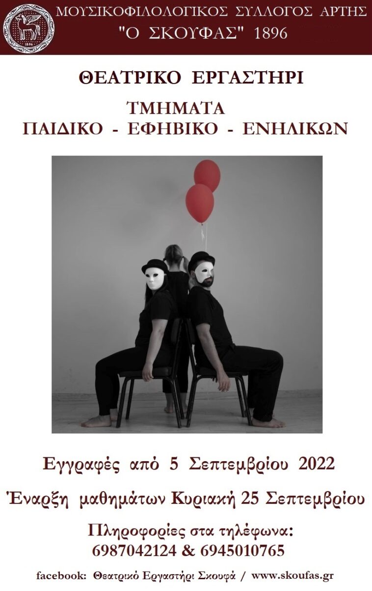 Για 8η χρονιά ο Μ/Φ Σύλλογος Άρτης “Ο ΣΚΟΥΦΑΣ” συνεχίζει την θεατρική του δράση με την λειτουργία Θεατρικού Εργαστηρίου.