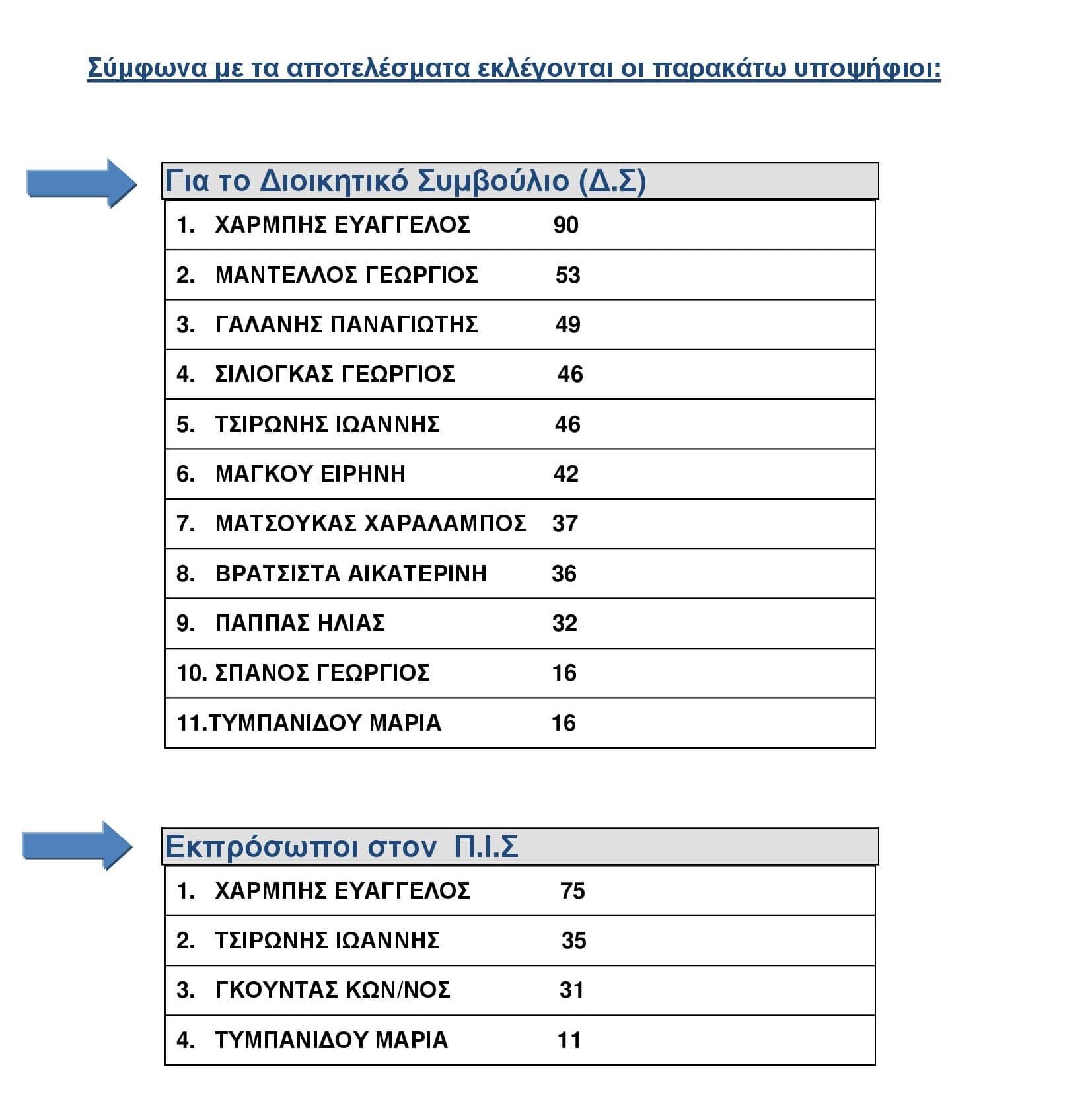 Μετά τη καταμέτρηση των έγκυρων ψηφοδελτίων τα αποτελέσματα έχουν :