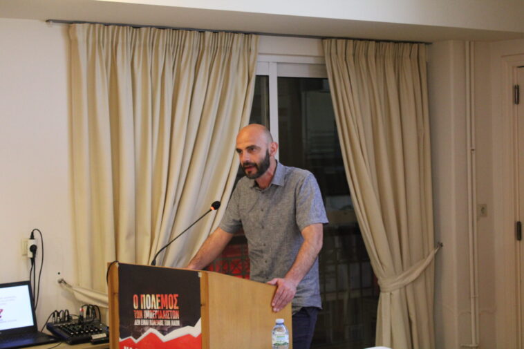 Ιδιαίτερα στάθηκε στον ρόλο της ελληνικής αστικής τάξης, επισημαίνοντας ότι η Ελλάδα δεν σέρνεται παρά τη θέλησή της στον πόλεμο, αλλά συμμετέχει ενεργά, προσδοκώντας μερίδιο από τη νέα μοιρασιά. Σε αυτό το πλαίσιο αναφέρθηκε στην αποστολή φρεγάτας στην Ερυθρά Θάλασσα, Patriot στη Σαουδική Αραβία, στη στρατιωτική βοήθεια στη Βουλγαρία, καθώς και στον ρόλο της Σούδας, του Ακτίου και του Αράξου. Για την Κύπρο ξεκαθάρισε ότι τα στρατιωτικά μέσα που έχουν σταλεί δεν προορίζονται για την προστασία του κυπριακού λαού, αλλά για την κάλυψη των βρετανικών βάσεων και των ΝΑΤΟικών υποδομών, τονίζοντας ότι η βαθύτερη εμπλοκή μετατρέπει τον λαό σε στόχο αντιποίνων.