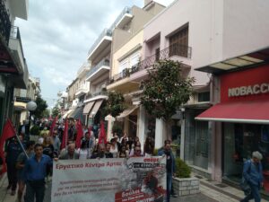 Η μαζική και μαχητική πορεία που ακολούθησε κατέληξε συμβολικά στο χώρο της έκθεσης ζωγραφικής, που λειτουργεί σε συνεργασία του Εργατικού Κέντρου Άρτας και των εκδόσεων της «Σύγχρονης Εποχής».