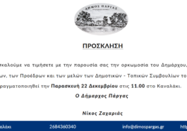 Πρόσκληση ορκωμοσίας του Δημάρχου, των Δημοτικών Συμβούλων, των Προέδρων και των μελών των Δημοτικών – Τοπικών Συμβουλίων του Δήμου Πάργας