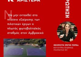 ΝΕΑ ΑΡΙΣΤΕΡΑ : «Να μην ενταχθεί στο πλαίσιο εξαίρεσης των πιλοτικών έργων ο πλωτός φωτοβολταϊκός σταθμός στον Αμβρακικό»