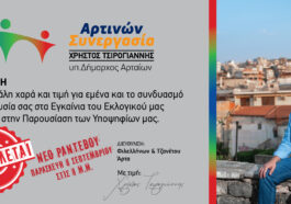 «Αρτινών Συνεργασία» : Εγκαίνια και Παρουσίαση Υποψηφίων Χρ. Τσιρογιάννης «Μαζί αλλάξαμε την Άρτα. Μαζί Συνεχίζουμε.