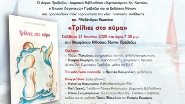Ανακοίνωση της Ένωσης Λογοτεχνών Πρέβεζας για την παρουσίαση της νέας ποιητικής συλλογής «Τρίλιες στο κύμα» της Αλεξάνδρας Κωστάκη