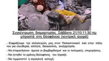 Συνέλευση Συντονισμού Εργαζομένων-Ανέργων Πρέβεζας: “Αλληλεγγύη στον Παλαιστινιακό λαό – Συγκέντρωση διαμαρτυρίας το Σάββατο στη Θεοφάνειο”