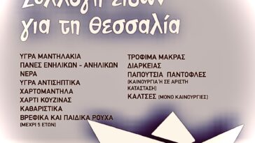Ανάπτυξη Τώρα: Συλλογή τροφίμων και ειδών πρώτης ανάγκης για τους πληγέντες από την κακοκαιρία “Daniel”