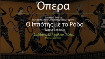 Το Δημοτικό Ωδείο Πρέβεζας συνεχίζει της μεταδόσεις της Μετροπόλιταν Όπερας της Νέας Υόρκης με την όπερα «Ο Ιππότης με το Ρόδο» του Ρίχαρντ Στράους