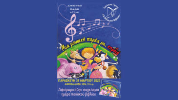 Αφήγηση ενός παιδικού βιβλίου με συνοδεία παρουσίασης μουσικών οργάνων, από τον Σύλλογο «Οι φίλοι του βιβλίου» και το Δημοτικό ωδείο Άρτας, την Παρασκευή 31/03 στην αίθουσα Διώνη