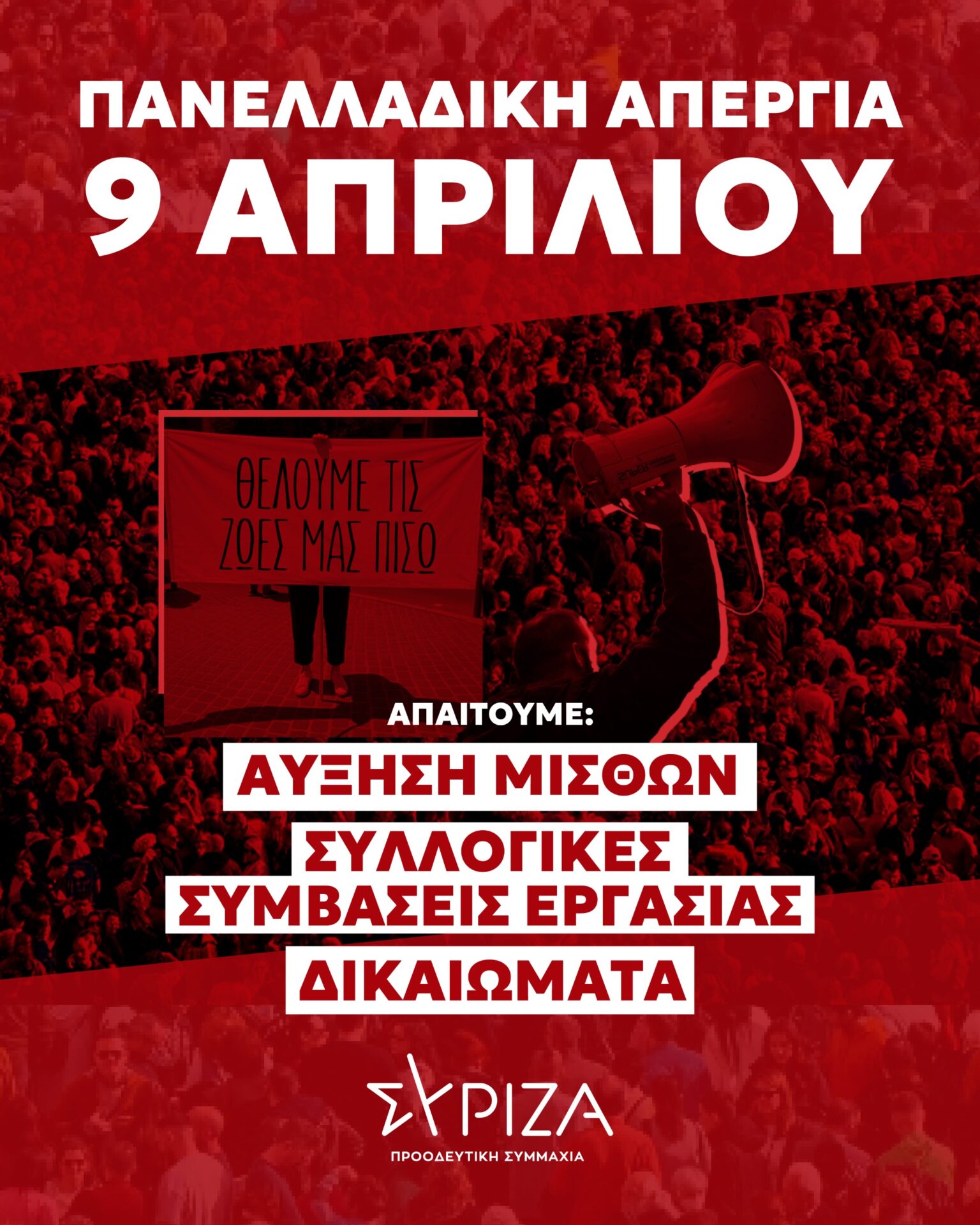 Τετάρτη 9 Απριλίου: Στηρίζουμε και συμμετέχουμε δυναμικά στις απεργιακές κινητοποιήσεις και συγκεντρώσεις της ΓΣΕΕ, της ΑΔΕΔΥ και των συνδικάτων