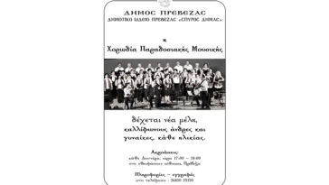 Ακροάσεις νέων μελών από τη Χορωδία Παραδοσιακής Μουσικής του Δημοτικού Ωδείου Πρέβεζας «ΣΠΥΡΟΣ ΔΗΜΑΣ»