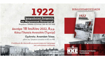 “1922: Ιμπεριαλιστική εκστρατεία και Μικρασιατική καταστροφή” – Βιβλιοπαρουσίαση από την Τομεακή Επιτροπή Ιωαννίνων του ΚΚΕ