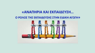 Ημερίδα με θέμα «ΑΝΑΠΗΡΙΑ ΚΑΙ ΕΚΠΑΙΔΕΥΣΗ… Ο ΡΟΛΟΣ ΤΗΣ ΕΚΠΑΙΔΕΥΣΗΣ ΣΤΗΝ ΕΙΔΙΚΗ ΑΓΩΓΗ» – Σήμερα 20/06 στις 7 μ.μ.