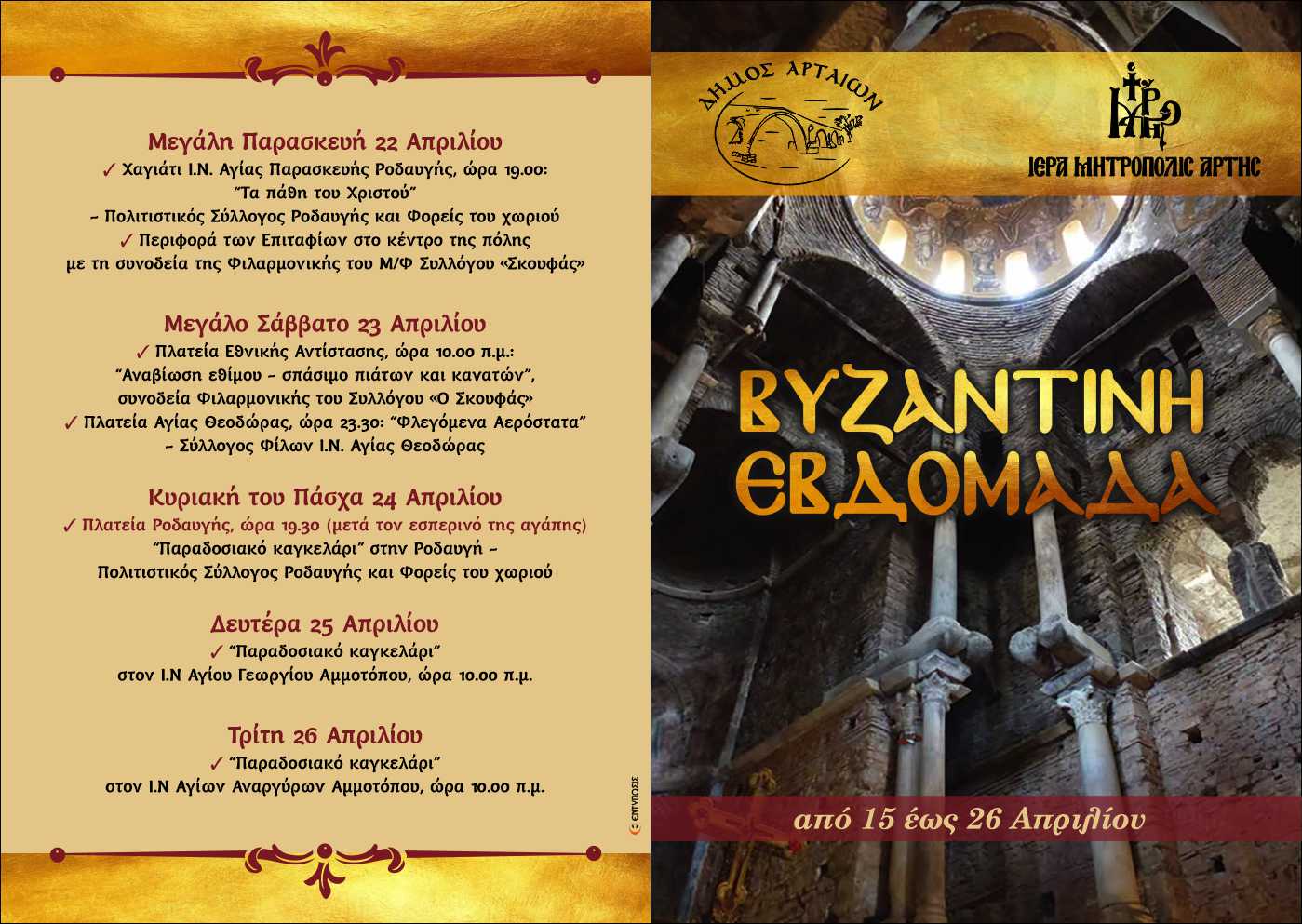 Ξεκινούν οι εκδηλώσεις για την «Βυζαντινή Άρτα» σε Ιερούς Ναούς, Βυζαντινά μνημεία με έθιμα και ψαλμωδίες