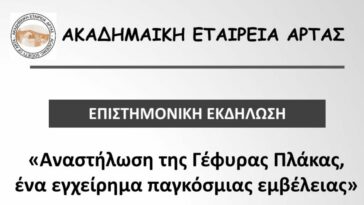 Επιστημονική Εκδήλωση της Ακαδημαϊκής Εταιρείας Άρτας με θέμα «Αναστήλωση της Γέφυρας Πλάκας, ένα εγχείρημα παγκόσμιας εμβέλειας»