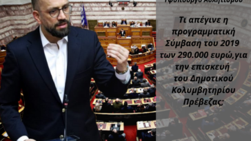 Σήμερα,Live η συζήτηση της Επίκαιρης Επίκαιρης Ερώτησης του Κώστα Μπάρκα για το Κολυμβητήριο Πρέβεζας.. Live streaming
