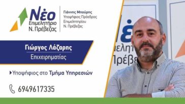 Ο Γιώργος Λάζαρης Υποψήφιος στις Επιμελητηριακές Εκλογές στο Τμήμα Υπηρεσιών με τον Συνδυασμό “Νέο Επιμελητήριο Ν. Πρέβεζας”