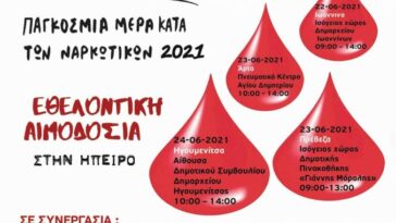 Εθελοντική Αιμοδοσία διοργανώνει το ΚΕΘΕΑ Ήπειρος σε συνεργασία με την Γενική Περιφερειακή Αστυνομική Διεύθυνση Ηπείρου