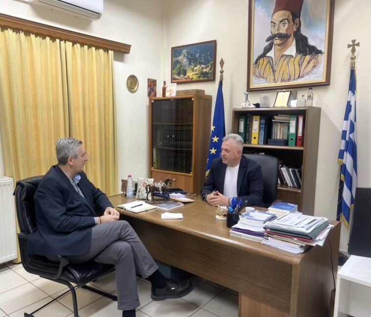 Ο κ. Τσιρογιάννης επισκέφθηκε το Δημαρχείο του Δήμου Γεωργίου Καραϊσκάκη στην Καλεντίνη, όπου είχε ουσιαστική και εποικοδομητική συνάντηση με τον Δήμαρχο κ. Περικλή Μίγδο, με τον οποίο τους συνδέει μακρά συνεργασία στον χώρο της αυτοδιοίκησης.