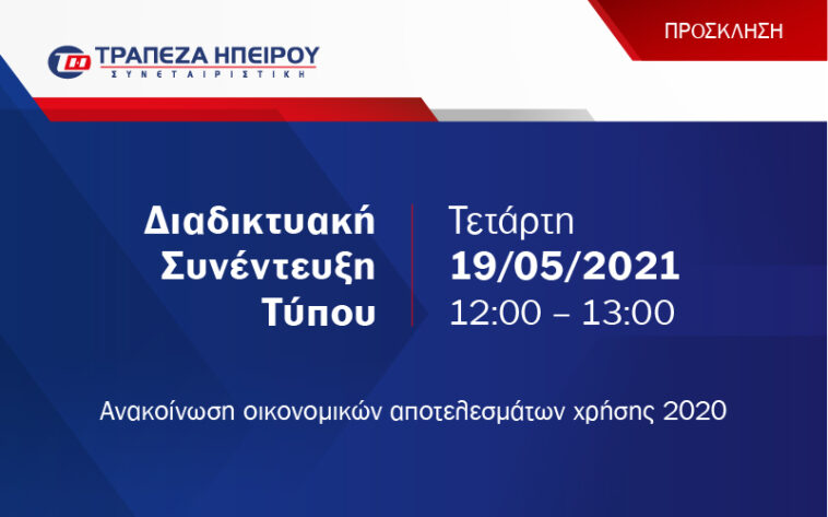 Η Συνεταιριστική Τράπεζα Ηπείρου σας προσκαλεί σε Διαδικτυακή Συνέντευξη Τύπου με θέμα: