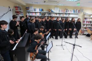 Επίσης στο πλαίσιο του μαθήματος της χορωδίας της γ΄γυμνασίου, έγινε βιντεοσκόπηση ρωσοεβραϊκού παραδοσιακού τραγουδιού της αγάπης και του έρωτα στη διάλεκτο Yiddish με υπεύθυνους εκπαιδευτικούς κλ. ΠΕ79.01, την κα Αναστασία Σταύρου και τον κο Δημήτρη Καμπόλη.