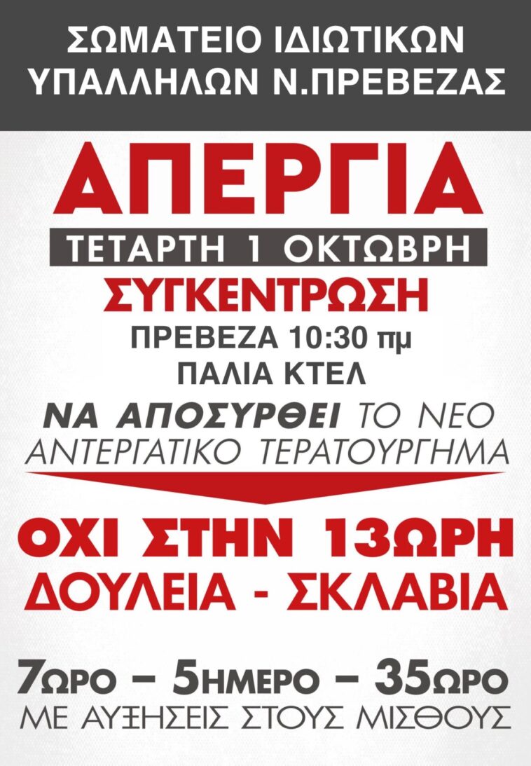 1η Οκτώβρη απεργούμε – δείχνουμε τη δύναμή μας – όλοι στα συνδικάτα
