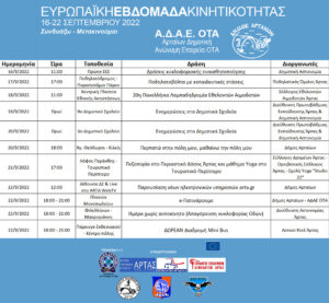 Ξεκίνησαν σήμερα από την κεντρική πλατεία της Άρτας οι δράσεις με τις οποίες ο Δήμος Αρταίων συμμετέχει στην Ευρωπαϊκή Εβδομάδα Κινητικότητας (16-22 Σεπτεμβρίου). Επίκεντρο της εβδομάδαςγια το 2022είναι οι «Καλύτερες συνδέσεις» και φετινό σύνθημα « Συνδυάζω – Μετακινούμαι».  Η Ευρωπαϊκή Εβδομάδα Κινητικότητας εστιάζεται κάθε χρόνο σε διαφορετικά θέματα που συνδέονται με τη βιώσιμη αστική κινητικότητα.