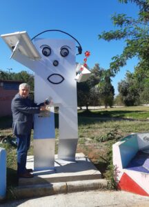 Το εν λόγω γλυπτό αποτελεί έναν Εικαστικό -Οικολογικό φορτιστή, ο οποίος τοποθετήθηκε στο χώρο του πάρκου Νεάπολης (πρώην Πυροβολικό) όπου και λειτουργεί η ζώνη δωρεάν WI-FI του Δήμου που είχε εγκατασταθεί το 2020 δημιουργώντας με αυτό τον τρόπο μια συνδυαστική δράση παραγωγής πολιτισμού από τη μαθητική κοινότητα, ευαισθησίας για την κλιματική κρίση προσφέροντας ένα οικολογικό φορτιστή και ψηφιακής μετάβασης αφού τοποθετήθηκε από το Δήμο στη ζώνη ελεύθερης πρόσβασης στο διαδίκτυο.