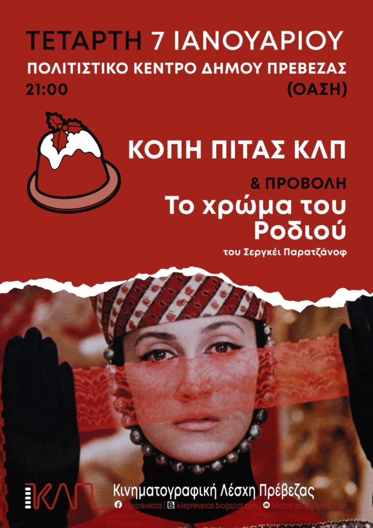 Η Κινηματογραφική Λέσχη Πρέβεζας κόβει την Πρωτοχρονιάτικη Πίτα της και παρουσιάζει, την αριστουργηματική ταινία του Σεργκέι Παρατζάνωφ.