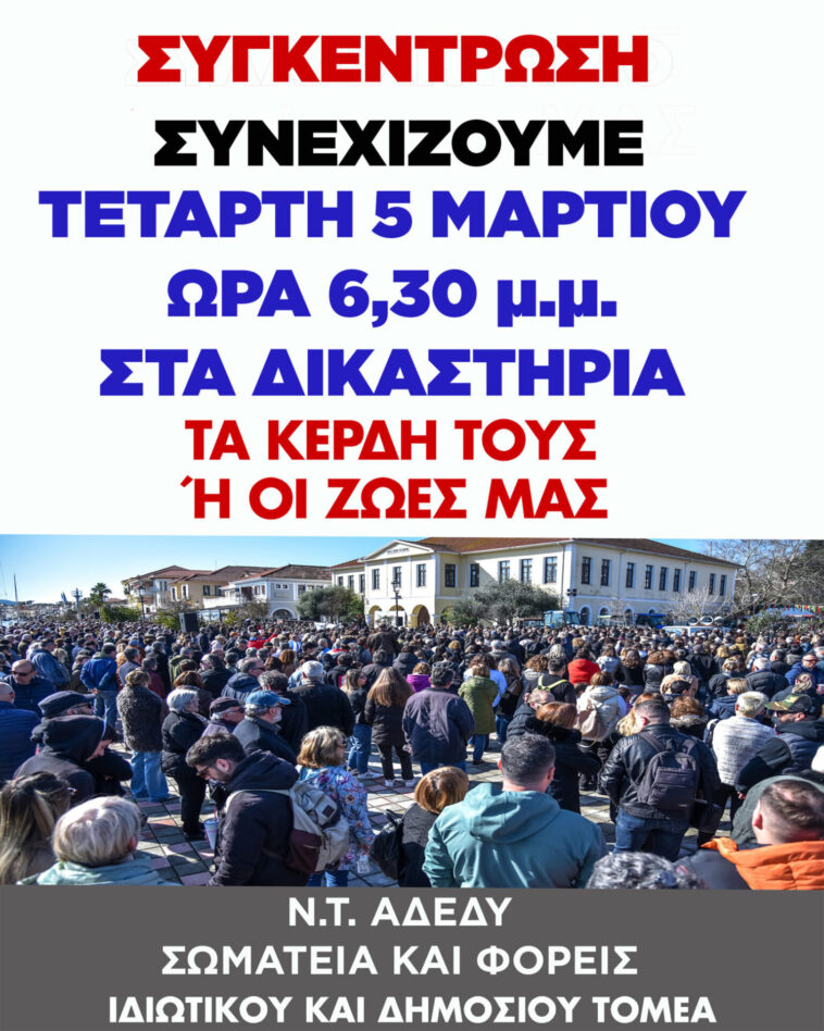 ΟΛΟΙ ΣΤΗΝ ΣΥΓΚΕΝΤΡΩΣΗ ΤΗΝ ΤΕΤΑΡΤΗ 5 ΜΑΡΤΗ