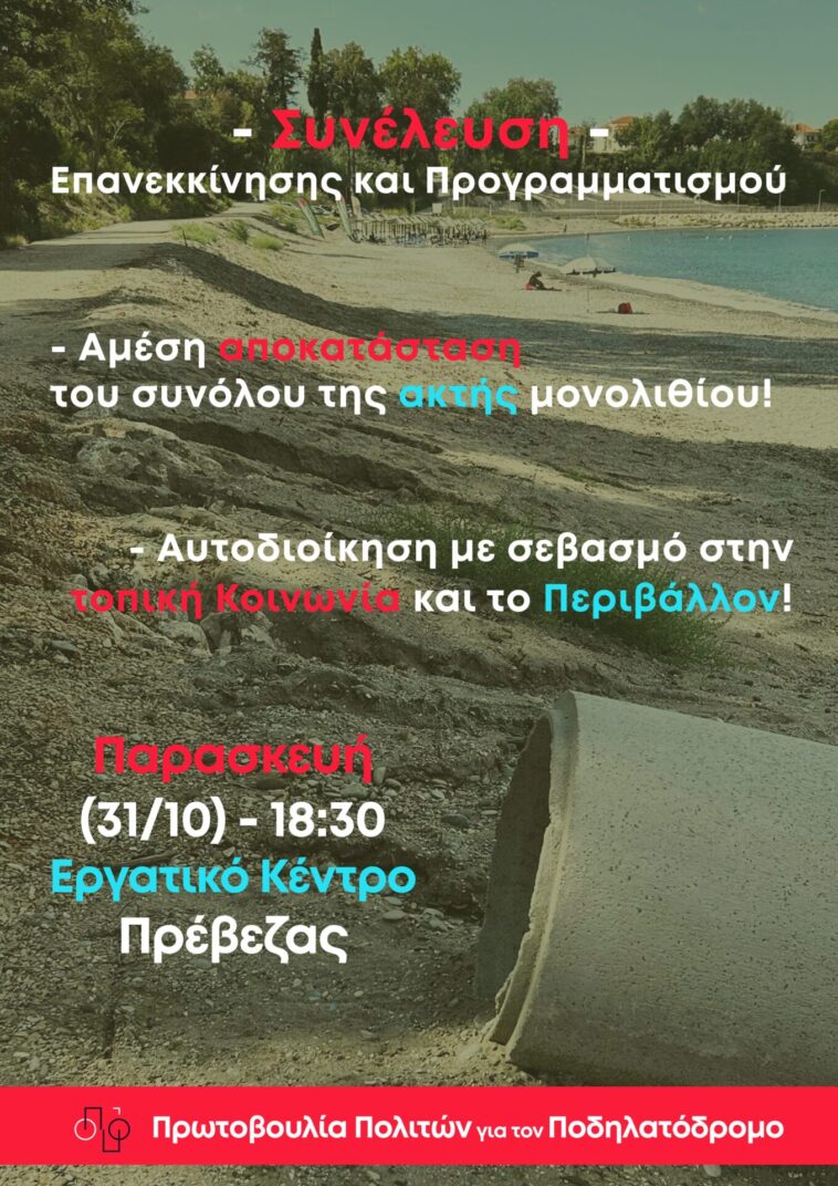 Πέρασαν περίπου δέκα μήνες από την έναρξη των καταστροφικών έργων στη μοναδική παραλία του Μονολιθίου και άλλοι τόσοι από την πρώτη συνέλευση της Πρωτοβουλίας μας για τον Ποδηλατοδρόμο.