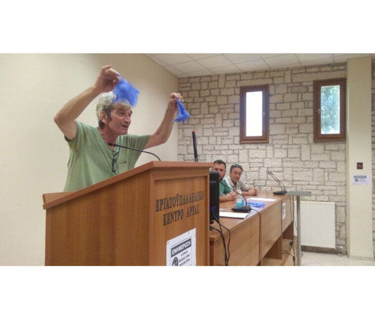 Στη συνέχεια, ο Γιώργος Αλιφτήρας με παραστατικό τρόπο έδειξε τα γάντια που κατά την εργοδοσία χορηγήθηκαν στον άτυχο ηλεκτρολόγο ως ατομικό μέσο προστασίας, για να αποδείξει ότι είναι παντελώς ακατάλληλα για ηλεκτρολογικές εργασίες αφού δεν έχουν καμία πιστοποίηση για αυτές και δεν παρέχουν καμία θωράκιση από το ηλεκτρικό ρεύμα. Πρόκειται άλλωστε για γάντια που κατασκευάζονται για προστασία από χημικές ουσίες και για χρήση σε ιατρικά εργαστήρια, γάντια που φορούν οι καθαρίστριες κατά τον καθαρισμό ή το προσωπικό που εργάζεται στα εργοστάσια τροφίμων.