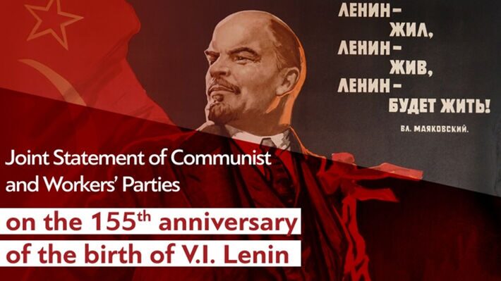 «Τα Κομμουνιστικά και Εργατικά Κόμματα, που συνυπογράφουμε αυτή την Κοινή Ανακοίνωση, θέλουμε και με αυτόν τον τρόπο να τιμήσουμε έναν μεγάλο επαναστάτη και θεωρητικό του επιστημονικού σοσιαλισμού, που στις 22 Απρίλη συμπληρώνονται 155 χρόνια από τη γέννησή του, τον Βλαντιμίρ Ιλιτς Λένιν.