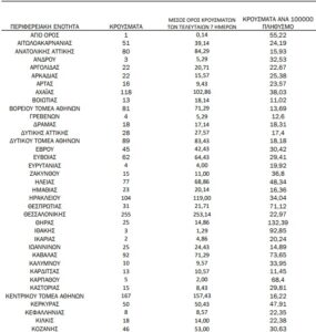 Κρούσματα: Θεσπρωτία 31- Πρέβεζα 7- Άρτα 16- Ιωάννινα 25- Λευκάδα 12