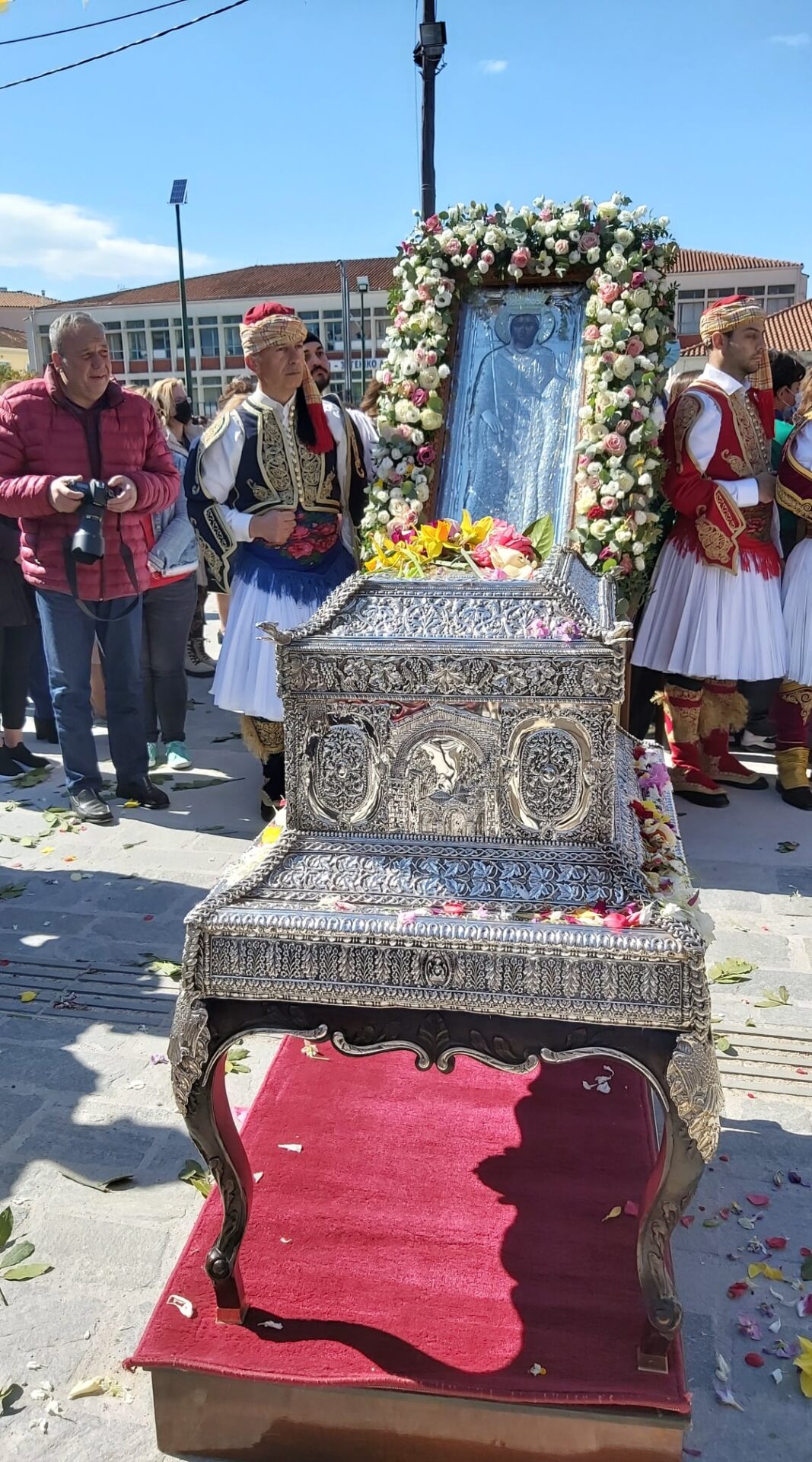Με κάθε επισημότητα και λαμπρότητα, πραγματοποιήθηκε ο φετινός εορτασμός της Πολιούχου Άρτης Αγίας Θεοδώρας. Χοροστατούντων του Σεβασμιωτάτου Μητροπολίτου Άρτης κ. Καλλινίκου και του Σεβασμιωτάτου Μητροπολίτου Θεσσαλιώτιδος και Φαναριοφερσάλων, κ. Τιμόθεου, με τη συμμετοχή της φιλαρμονικής του Μουσικοφιλολογικού Συλλόγου Άρτας “Ο Σκουφάς”, Τμημάτων Πολιτιστικών Συλλόγων και πιο συγκεκριμένα, του Λυκείου Ελληνίδων, του Μακρυγιάννη, του Σκουφά και του 1ου Συστήματος Προσκόπων Άρτας, πραγματοποιήθηκε η λιτάνευση των Λειψάνων και της Ιεράς Εικόνας της Αγίας Θεοδώρας, στους δρόμους της Άρτας, που είχαν γεμίσει με κόσμο.