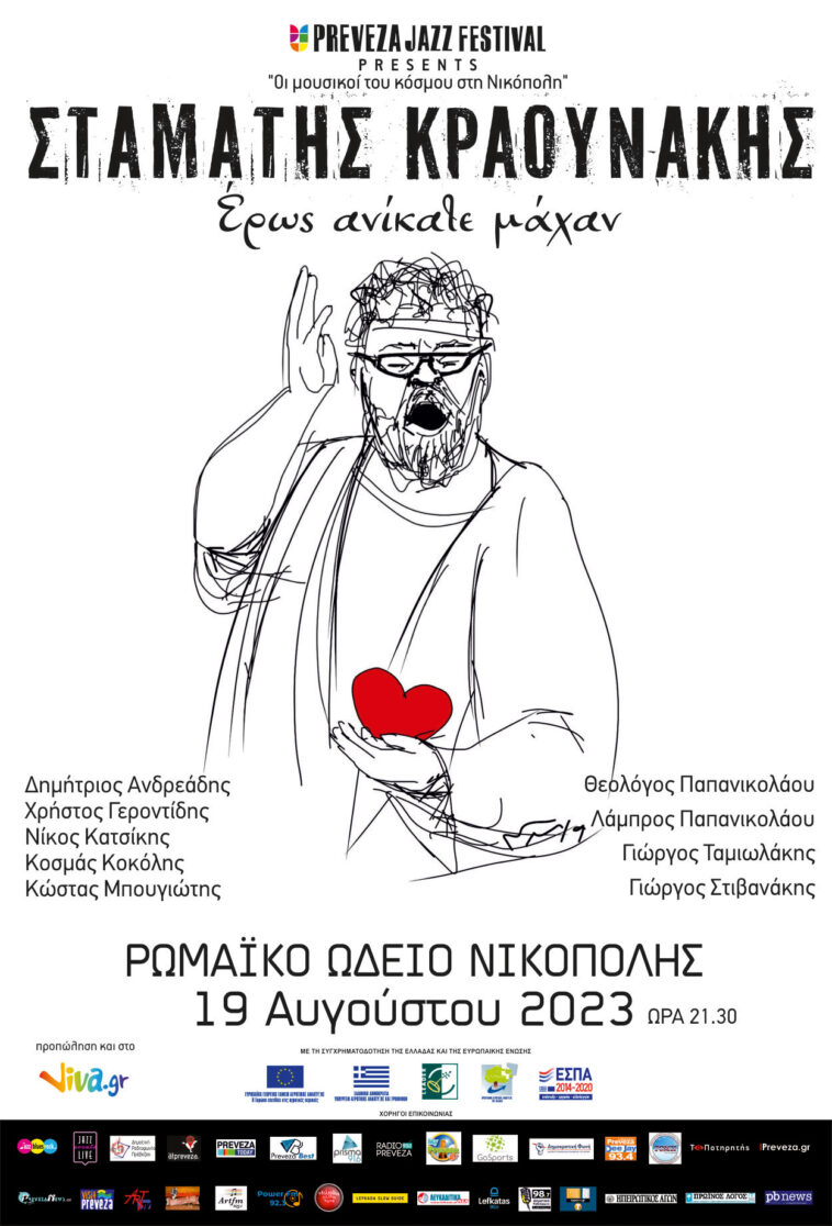Μια αξέχαστη εμπειρία στο μοναδικό Ρωμαϊκό Ωδείο της Νικόπολης παρέα με τον ερωτικό Σταμάτη Κραουνάκη επιφυλάσσει το Preveza Jazz Festival για το Σάββατο 19 Αυγούστου 2023, στις 21.30. Η παράσταση που έγινε sold out στην Μικρή Επίδαυρο στο πλαίσιο του Φεστιβάλ Αθηνών & Επιδαύρου έρχεται στην Πρέβεζα για μια και μοναδική παράσταση !