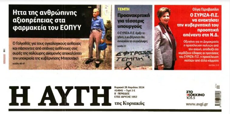 Συνέντευξη της Όλγας Γεροβασίλη, Δ’ Αντιπροέδρου της Βουλής των Ελλήνων, βουλευτή Άρτας του ΣΥΡΙΖΑ – Προοδευτική Συμμαχία, στην εφημερίδα “Η ΑΥΓΉ της Κυριακής” και τον δημοσιογράφο Ιάσονα Σχινά – Παπαδόπουλο