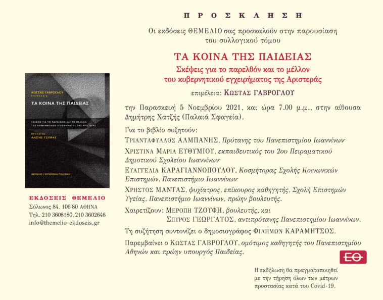 Η εκδήλωση θα πραγματοποιηθεί με την τήρηση όλων των μέτρων προστασίας κατά του Covid-19.