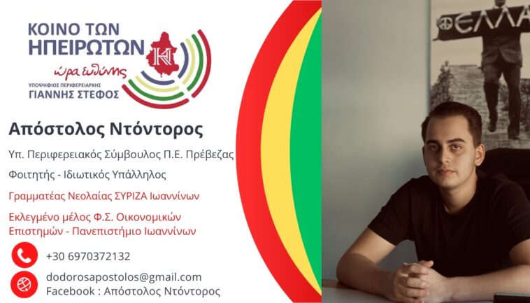 Ο Απόστολος Ντόντορος υποψήφιος Περιφερειακός Σύμβουλος με το “Κοινό των Ηπειρωτών’