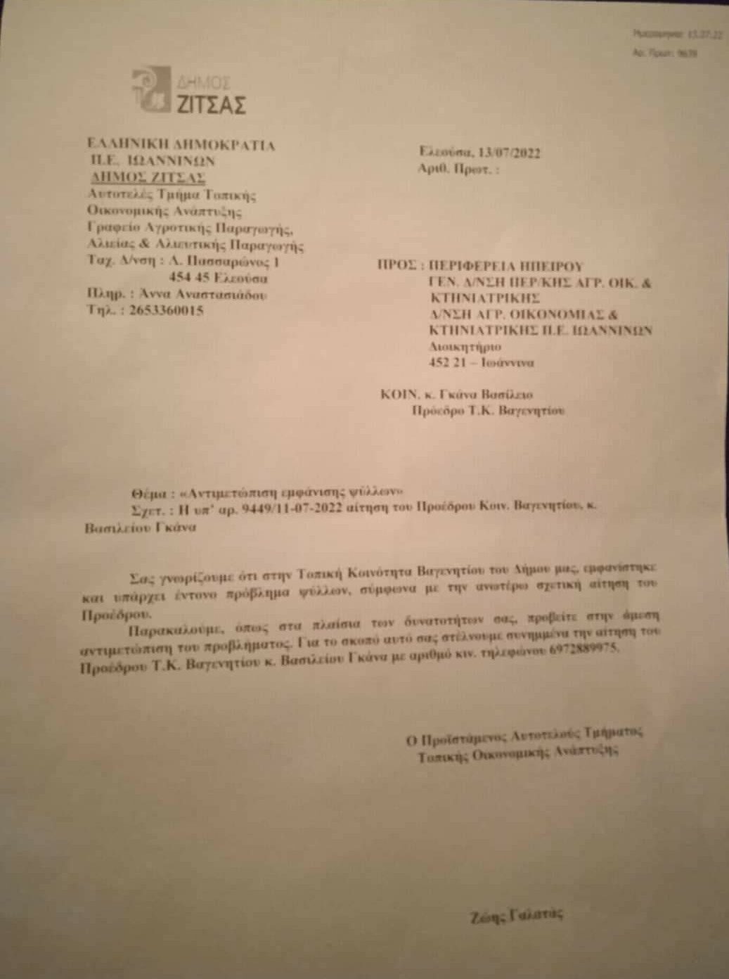 Εντύπωση δημιούργησε στον κ. Ριζόπουλο ότι ενώ η καταγγελία εμπερίεχει πολλά ζητήματα, εντούτοις ο δήμος Ζίτσας αναφέρεται αποκλειστικά σε θέματα ψύλλων.